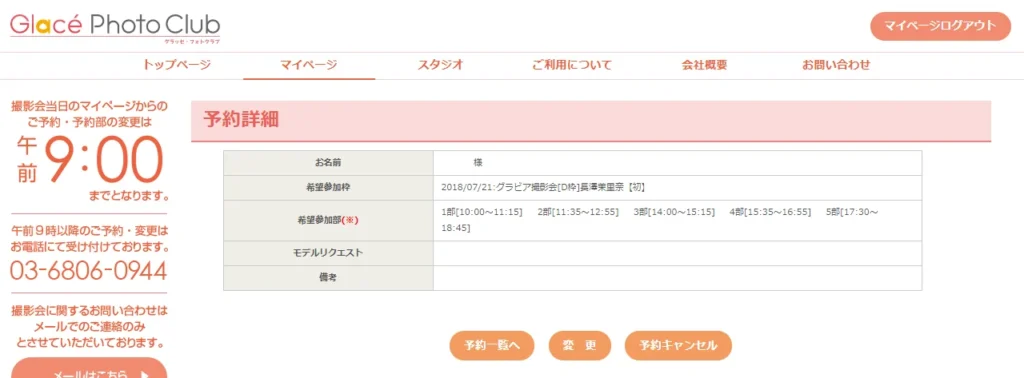 即席で作ったため、画面の一部が本来の予約と違う場合があります。