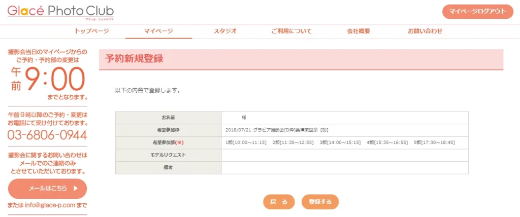 問題なければ「登録する」ボタンを押すと予約完了になります。