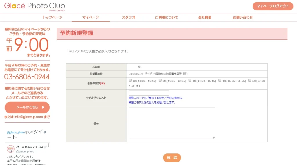 22:00に[F5]して即前枠にチェックを入れて予約を行いました。