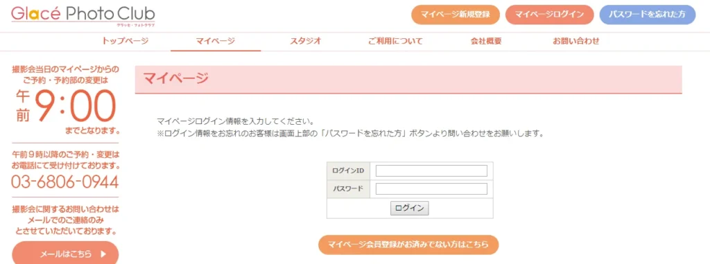 ※ログイン状態でないと予約ページに飛ぶ前にログイン画面に遷移します。