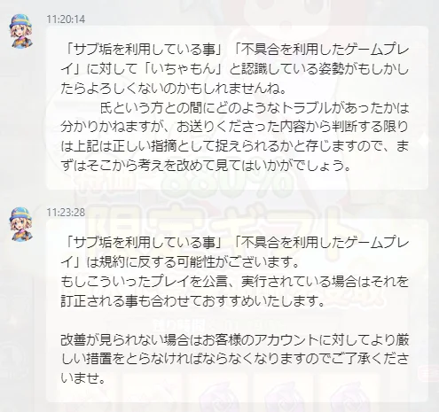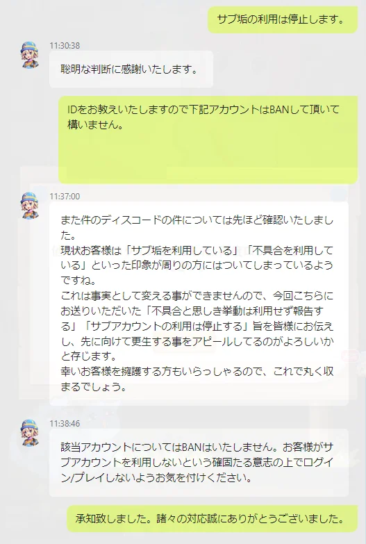 運営に確認をしたうえで、サブ垢の利用は停止しました。