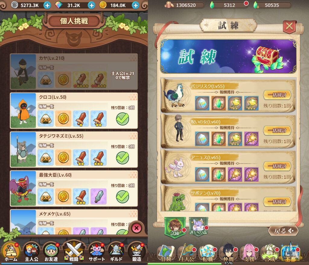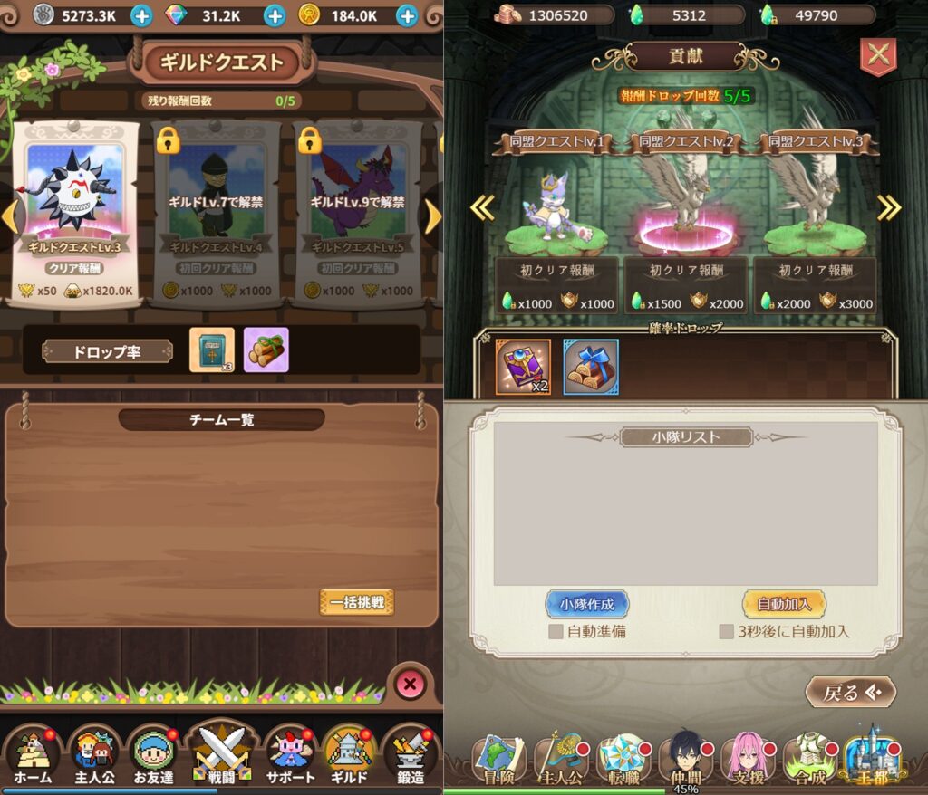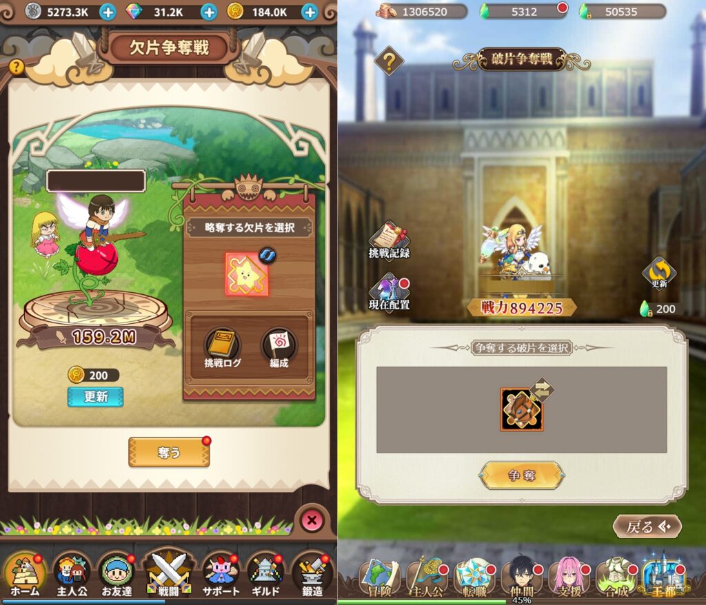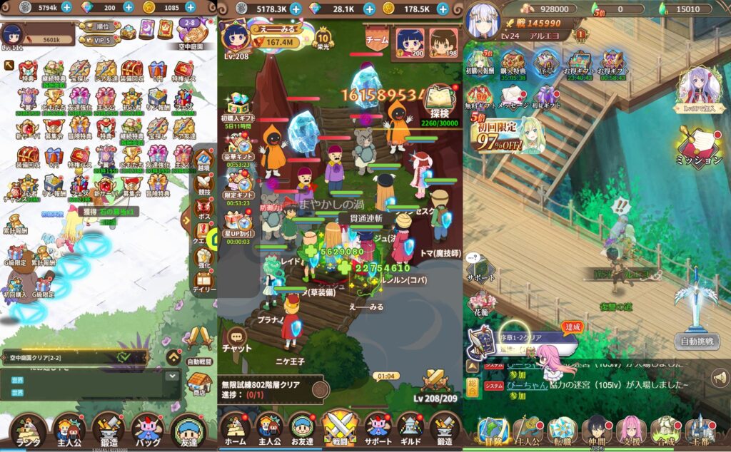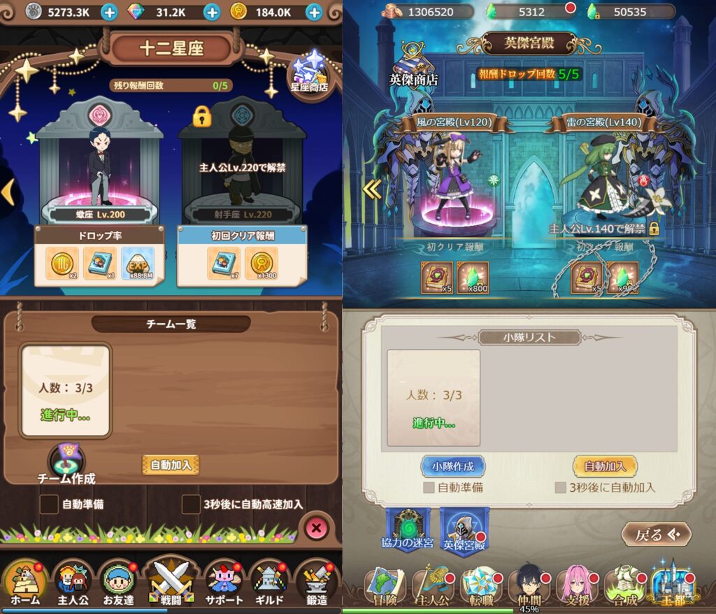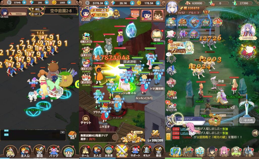 自動放置画面や色んな箇所で戦える箇所では、