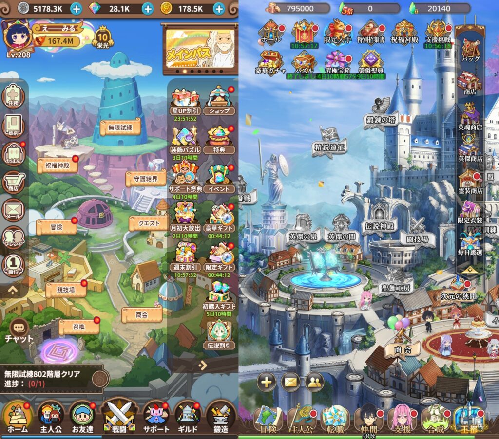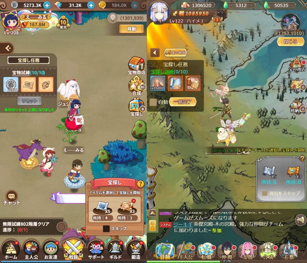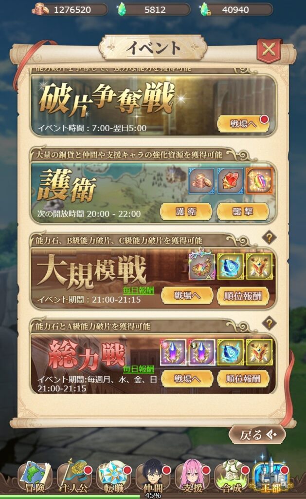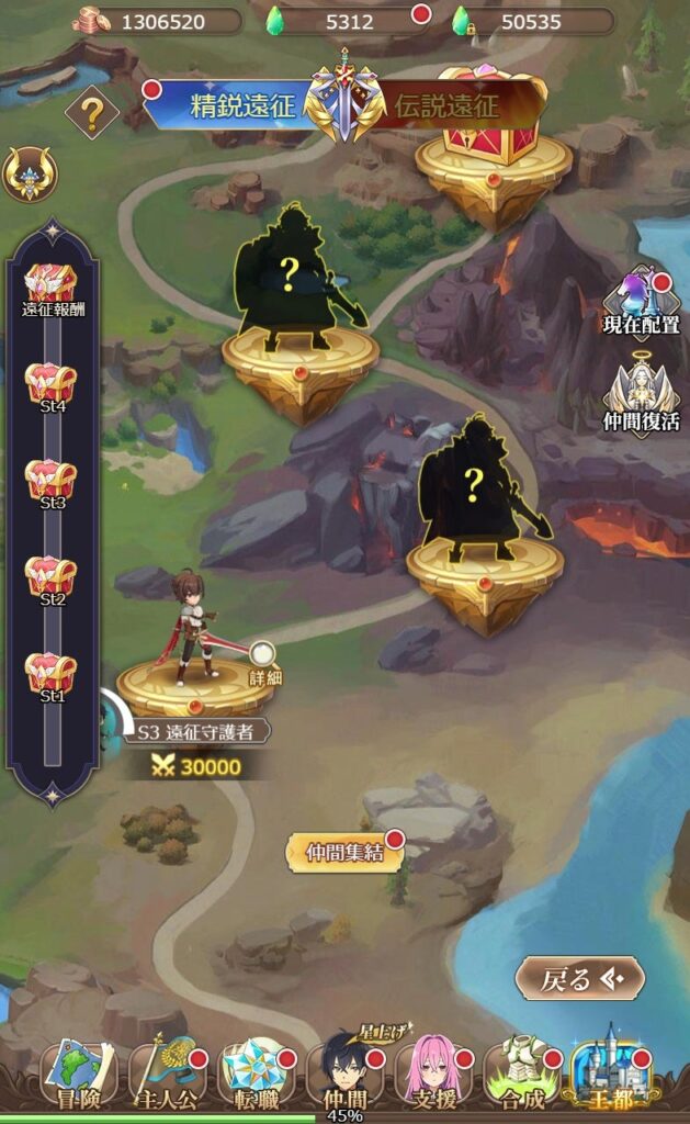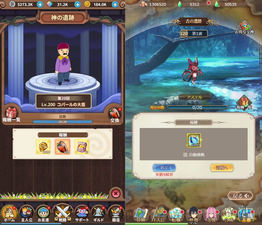 自動放置画面や色んな箇所で戦える箇所では、