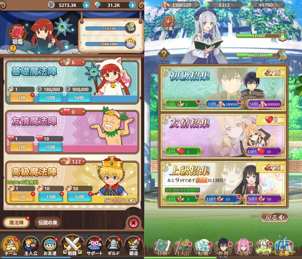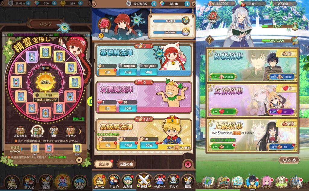 一定回数、ガチャを回すとLRが手に入ったりもしましたが、