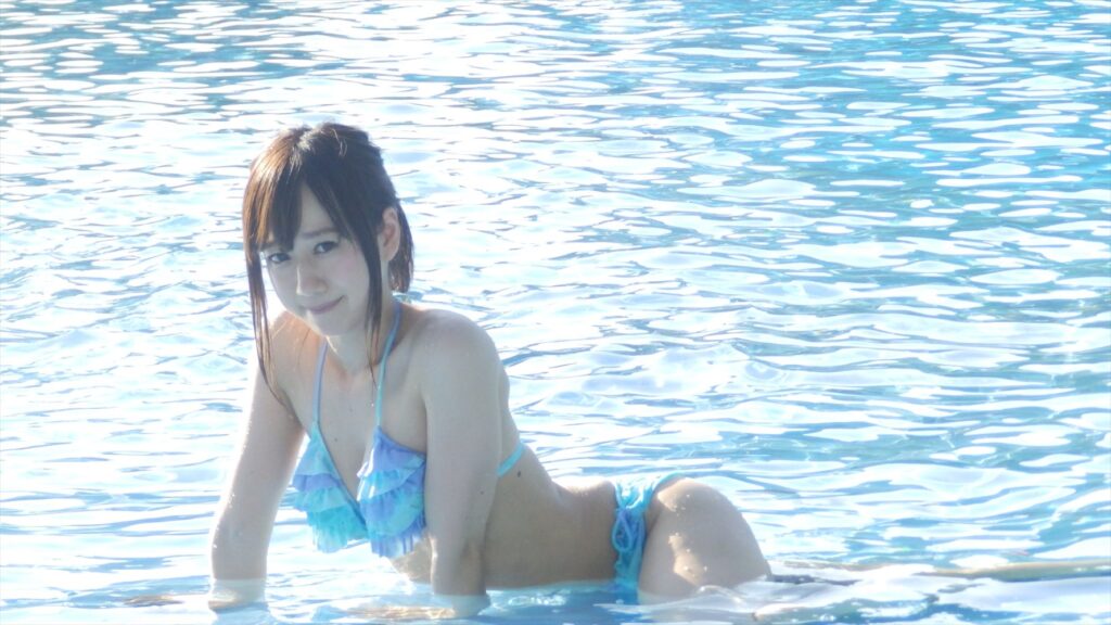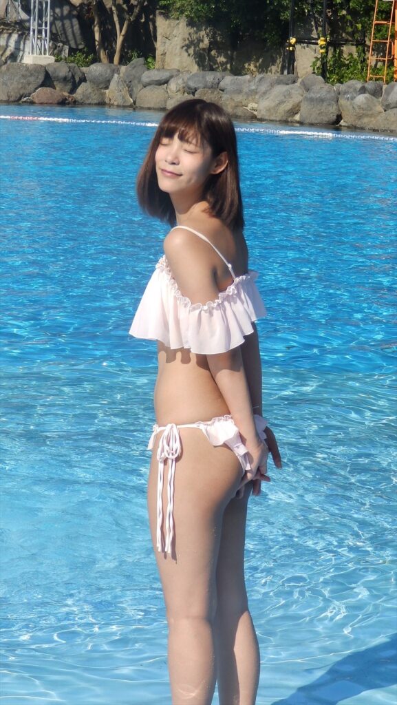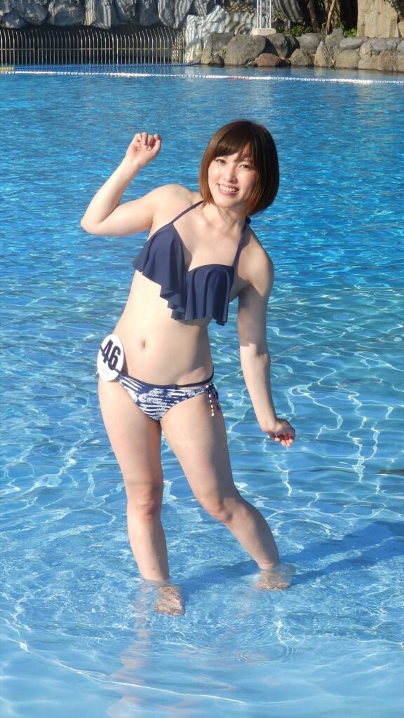 服装は、チャイニ水着上からサンスポのTシャツと短パンジーンズでした。