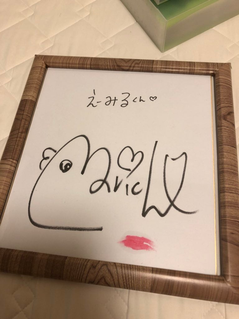 ⑤サイン色紙にその場で為書き&キスマークをつける