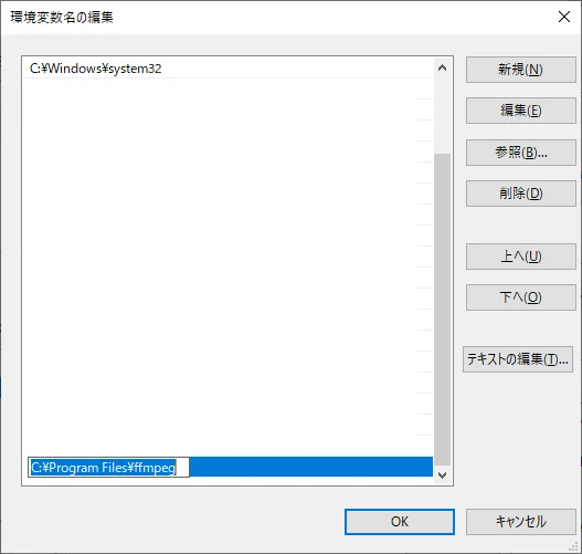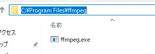 Cドライブの「Program Files」に新規で「ffmpeg」という