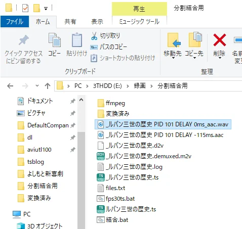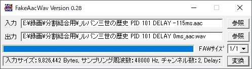 変換終了後に「DELAY 0ms_aac.wav」ファイルが作成されます。