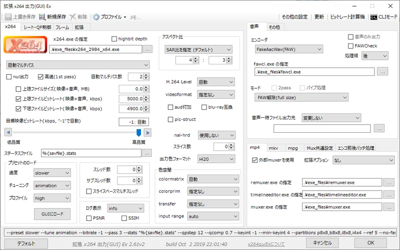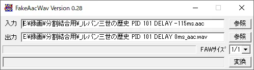 音声のエンコーダを「FakeAacWav(FAW)」に変更して、