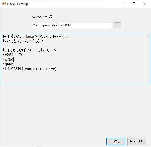 起動したら「AviUtl.exe」のあるフォルダを指定します。