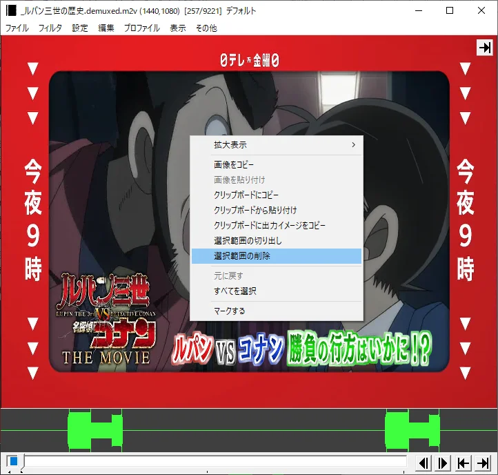 この部分は不要なので右クリックから「選択範囲の削除」を押下します。