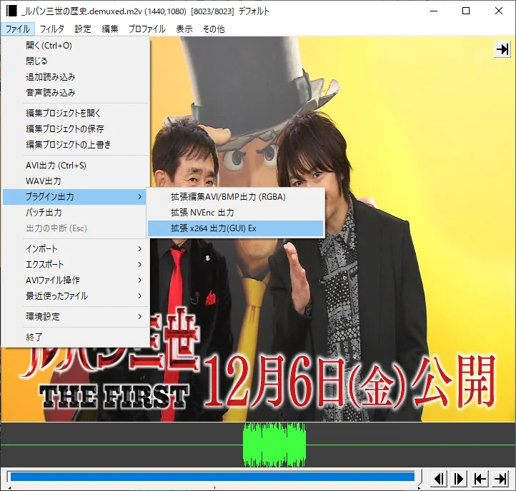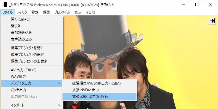 > 「プラグイン出力」 > 「拡張 x264 出力(GUI) Ex」を押下します。