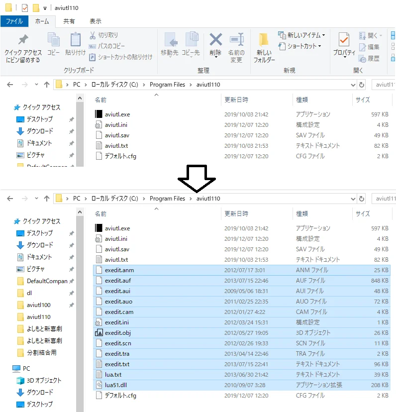 19/12/07現在だと最新は「aviutl110.zip」です。