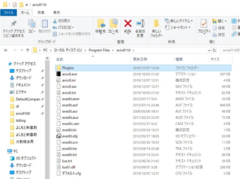 AviUtlのあるフォルダに新規で「Plugins」というフォルダを作って
