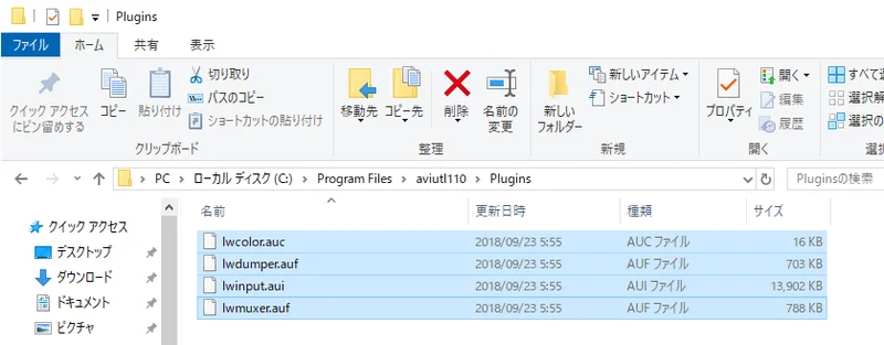 「lwmuxer.auf」「lwcolor.auc」「lwdumper.auf」「lwinput.aui」