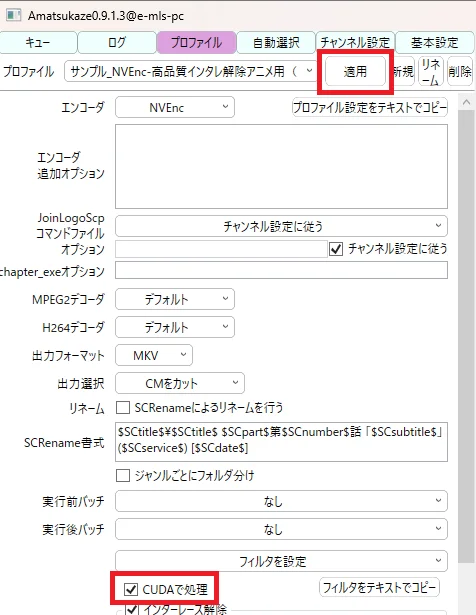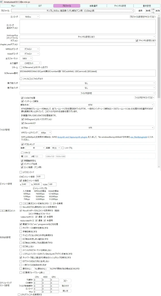 『サンプル_x265-高品質インタレ解除アニメ用(CUDA必須)』を