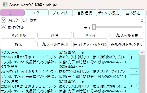 Amatsukazeは、録画したtsファイルを