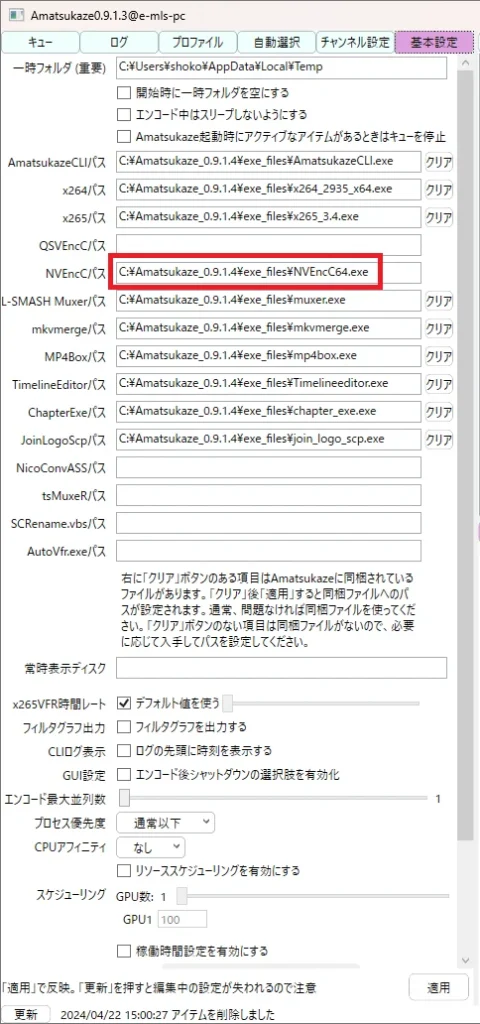 ※忘れずに『NVEnc.exe』を追加して指定してください。