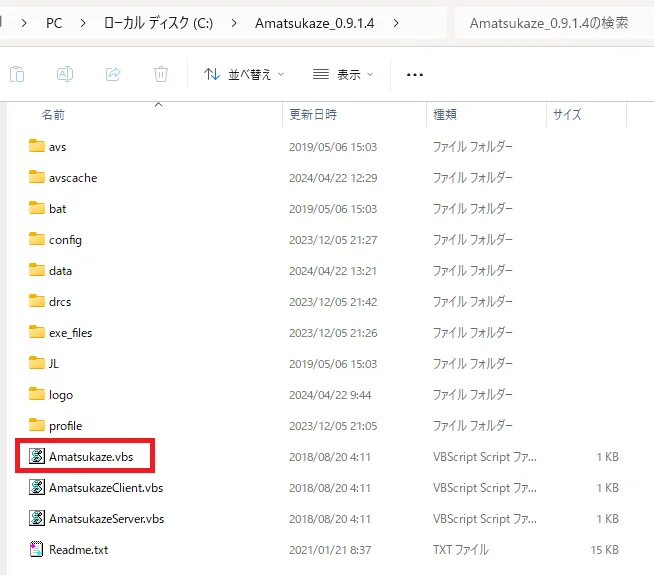 『Amatsukaze.vbs』をダブルクリックで起動してください。