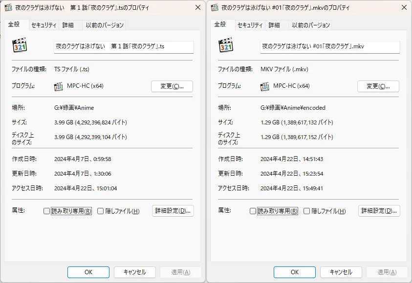 『x264』『x265』に圧縮して保存していないでしょうか?