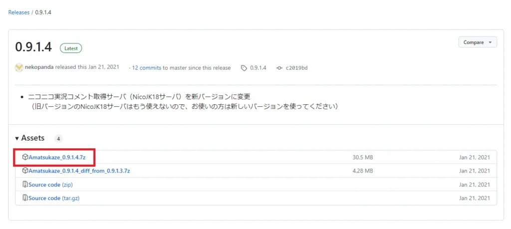 『Amatsukaze_0.9.1.4.7z』の箇所を押下して、