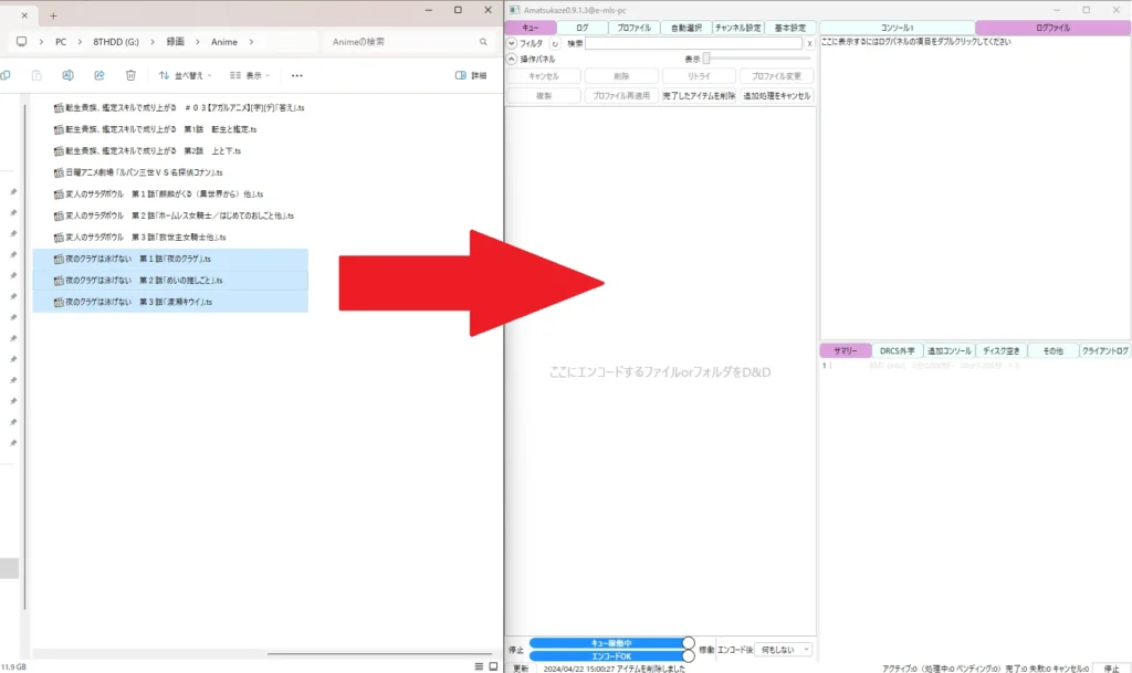 『ここにエンコードするファイルorフォルダをD&D』の箇所に、