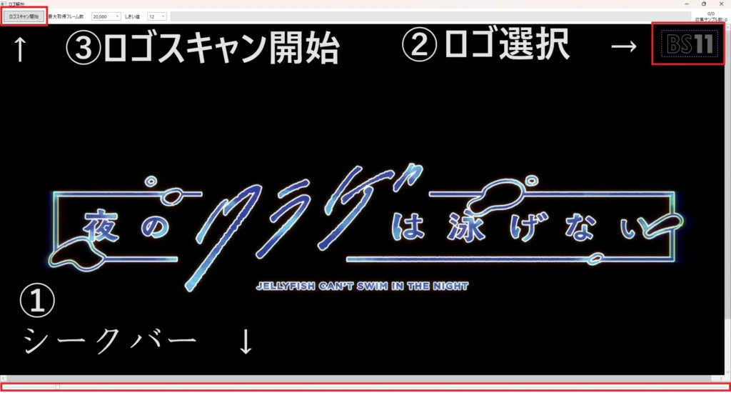 ロゴを全フレームスキャンするのでしばらく待ちます。