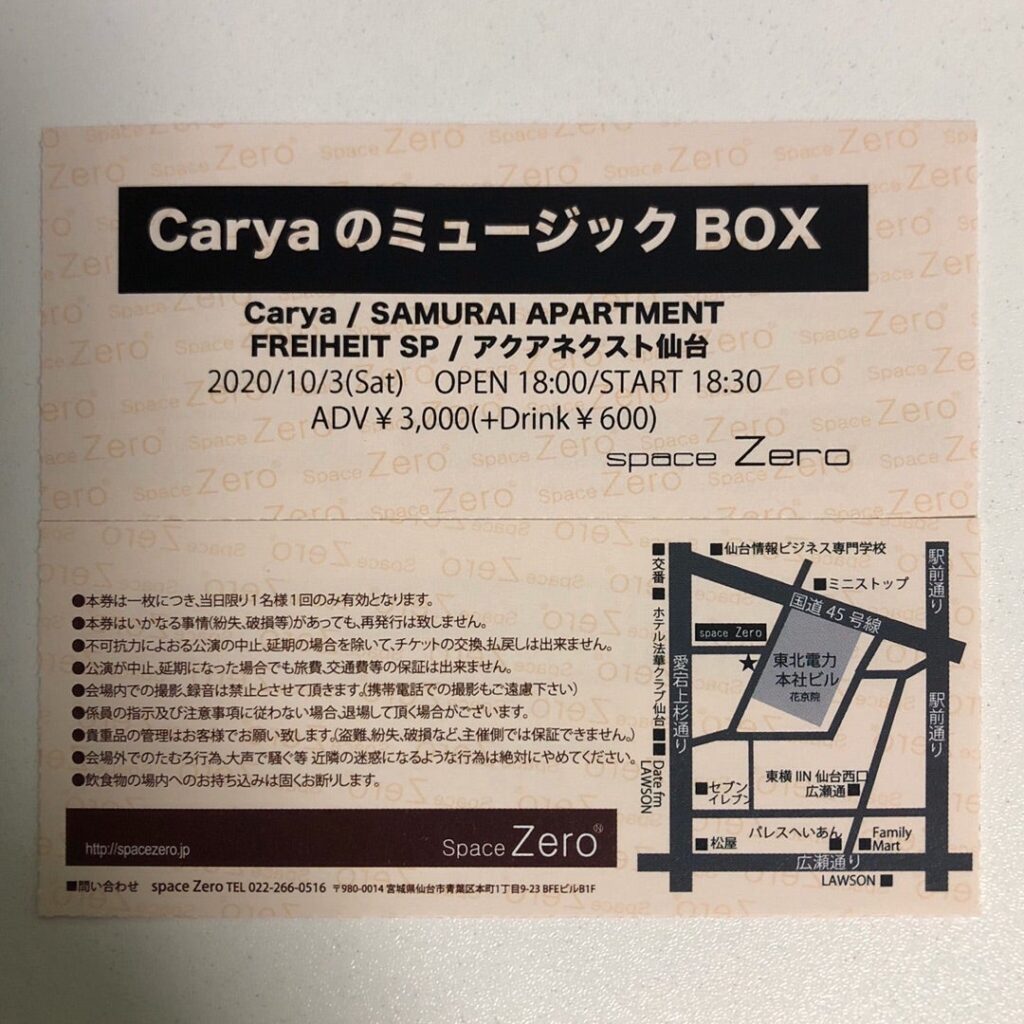CaryaのミュージックBOX in 仙台SpaceZeroにも