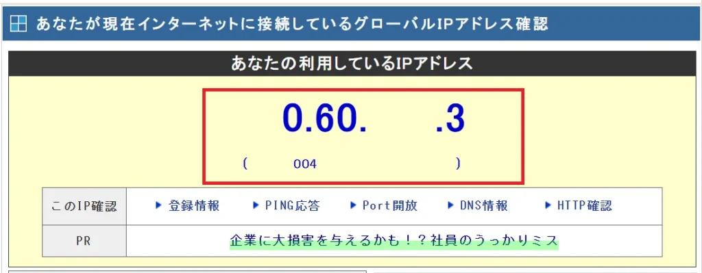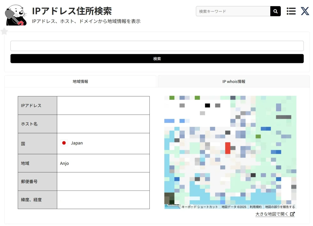 CMANで調べたIPアドレスを入力するとおおまかな場所がわかります。
